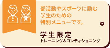 ・スポーツパフォーマンスを上げたい ・もっと速く、強く、スムーズに動けるようになりたい ・ケガから復帰したい、再発を防ぎたい ・フォームを改善したい そんな学生におすすめです。